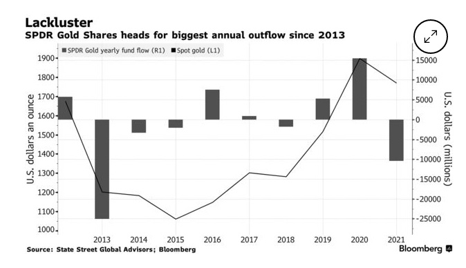 SPDR Gold Shares将迎来自2013年以来最大的年度资金流出
