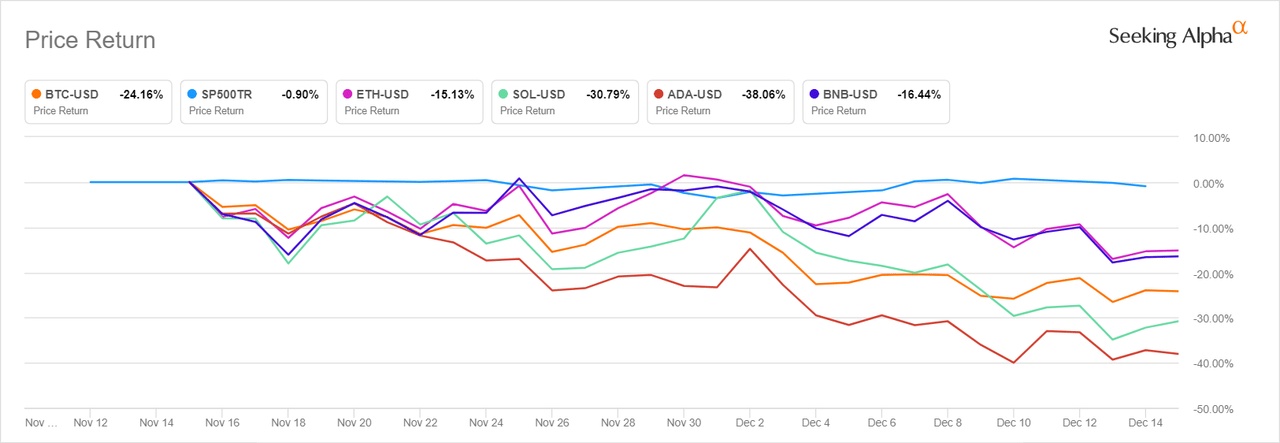 美联储公布利率决议后,美股走高。尽管如此,标普500指数和世界上一些市值较大的加密货币,包括Solana、Cardano和币安币等,都在净负值区域进行交易。
