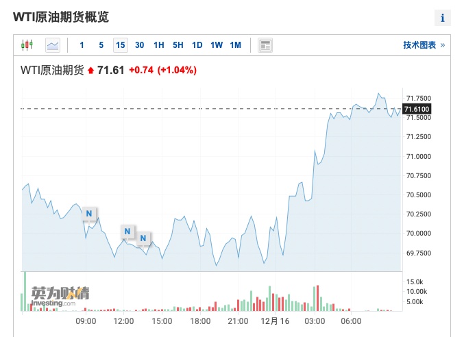 美国能源信息署(EIA)报告称,上周美国原油库存减少458万桶,这是美国消费的积极信号。原油出口量回升至每日300万桶以上,交易商将原油出口至海外以避免年终税收对库存的影响。