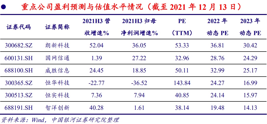 第二,新型电力系统需要电网进行数字化转型,看好数字电网建设中物联网智能传感、平台和终端应用的增长,以及智慧电力运维与监测的需求增长。数字电网以数据为关键生产要素,小微传感、芯片化智能终端和智能网关将得到大量部署。具有间歇性和波动性的能源大规模并网将会给现有电网的电能质量和安全运行造成一定压力,提高电力运维与监测的效率与质量是必然要求。