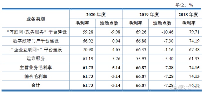 整体经营成本的增长也在一定程度上影响了公司的毛利水平。从招股书披露的数据不难看出,从2018-2020年,公司综合毛利率持续下滑从74.2%跌至61.7%。不过这一毛利水平与同行业可比上市公司拓尔思、博思软件基本一致。由于南威软件的电子政务业务开展中涉及较多硬件销售及系统集成业务,由于行业内该部分业务毛利率较低。若剔除南威软件,其余三家同行业可比上市公司报告期内的平均毛利率为63.13%、62.28%和60.29%,与公司毛利率水平基本一致。