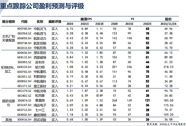 一方面,目前估值中主机厂估值高,抬高整体行业估值,除主机厂外其他具备投资价值的公司目前估值相对合理。更重要的是,十四五期间,军工板块订单释放迅速,该行估计板块业绩将维持20%以上的年复合增速,增长将继续起到消化估值的作用。目前处于年末估值切换重要时期,切换到2022年军工板块对应市盈率下降显著,目前估值极具吸引力。