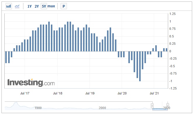 具体来说,根据对18位经济学家的调查,日本11月核心消费者价格指数(CPI)可能较上年同期增长0.4%。这将是自2020年3月以来的最大涨幅,此前该数据10月的增幅为0.1%。