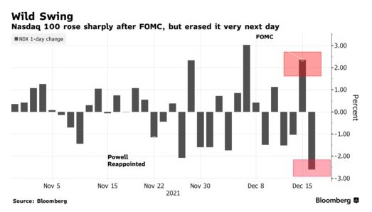 据了解,本周,美联储转向鹰派,点阵图显示美联储多数委员预计明年至少加息3次,此举引发股市波动,促使投资者抛售科技股。而在昨日,英国央行自疫情爆发以来首次加息,主要央行开始了加息周期。