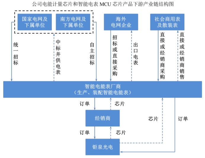 另一方面,芯片设计属于智力密集型行业,钜泉光电等作为芯片生产商主要将精力及资源集中于新产品的研发设计,因此也主要采用经销模式进行产品销售。其中,经销商可为其产品提供物流服务、基础的技术支持和售后服务,也可为终端核心客户之外的中小客户提供公司产品相关的技术服务。