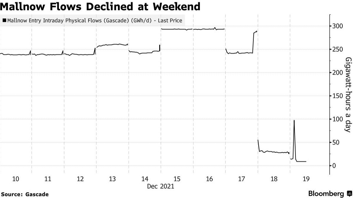 德国天然气运营商所提供的数据显示,12月18日当天,俄罗斯通过亚马尔·欧洲管道向德国输送的天然气急剧下降。