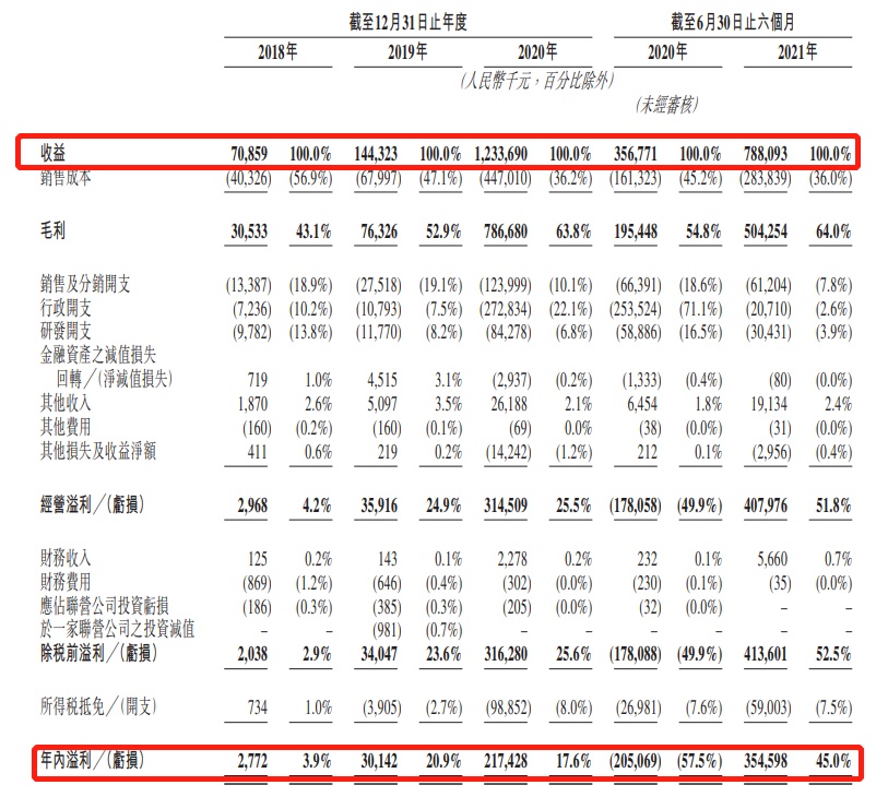 截至2021年上半年,该公司营收和净利润继续维持增长之势:期内营收为7.88亿元,同比增长120.73%;净利润为3.55亿元,较去年同期净亏损2.05亿元大幅扭亏。