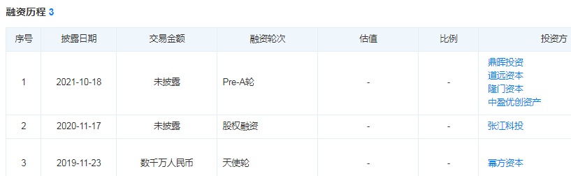 智通财经APP获悉,据36氪报道,截至目前,和度生物已先后完成天使轮、战略轮、Pre-A轮融资。其中Pre-A轮融资由鼎晖投资领投,道远资本、隆门资本与中盈鑫达跟投。