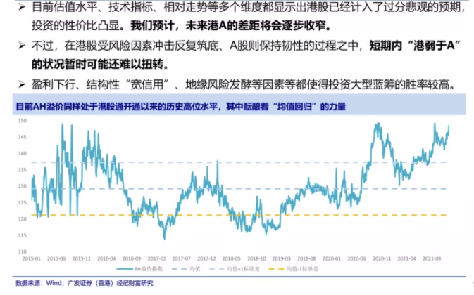 流动性:A股对内地的流动性更加敏感、港股作为典型的离岸市场则受全球流动性的变化影响更大。因此,后续内地的宽松有望提振A股(本次稳增长表述的明确性属于近年少见),还有居民资金入市和北向资金增加的双重提振;全球的收水则将施压港股(点阵图显示22年和23年美联储将各加息3次)。