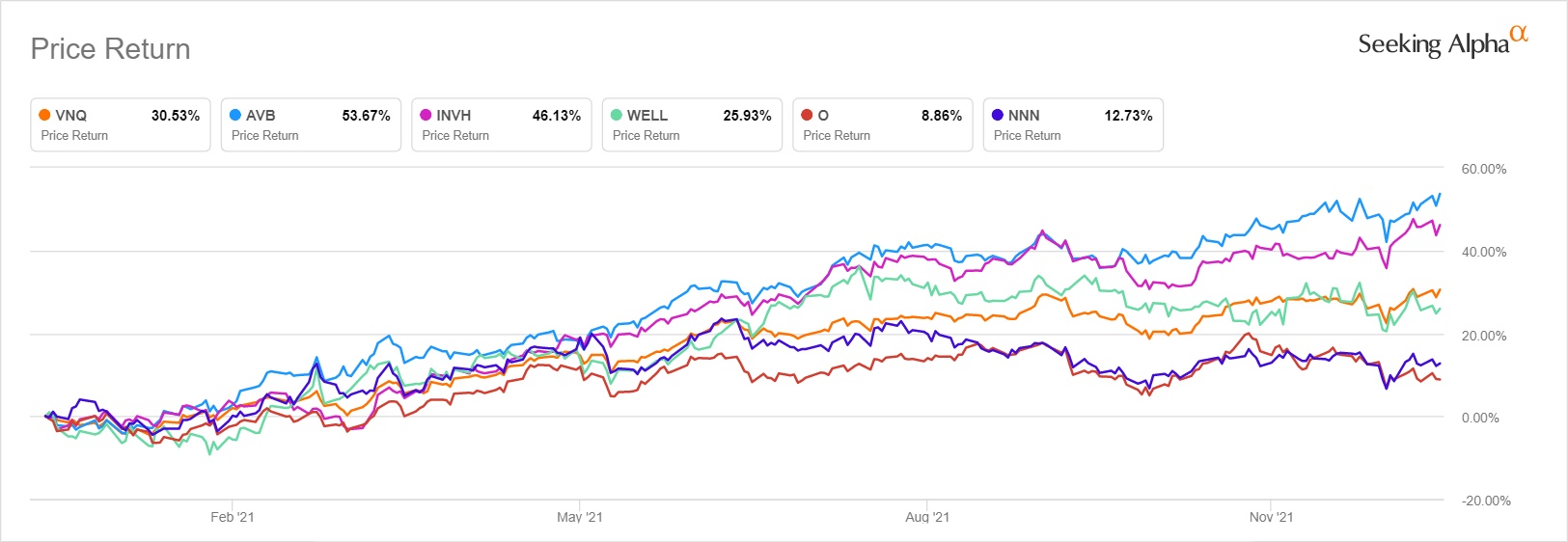 富国银行分析师Blaine Heck在一份给客户的报告中表示,他认为工业类型REIT在2022年可能会表现良好。值得注意的是,该类型REIT今年迄今已经上涨了55%,整体REITs涨幅则为32%。
