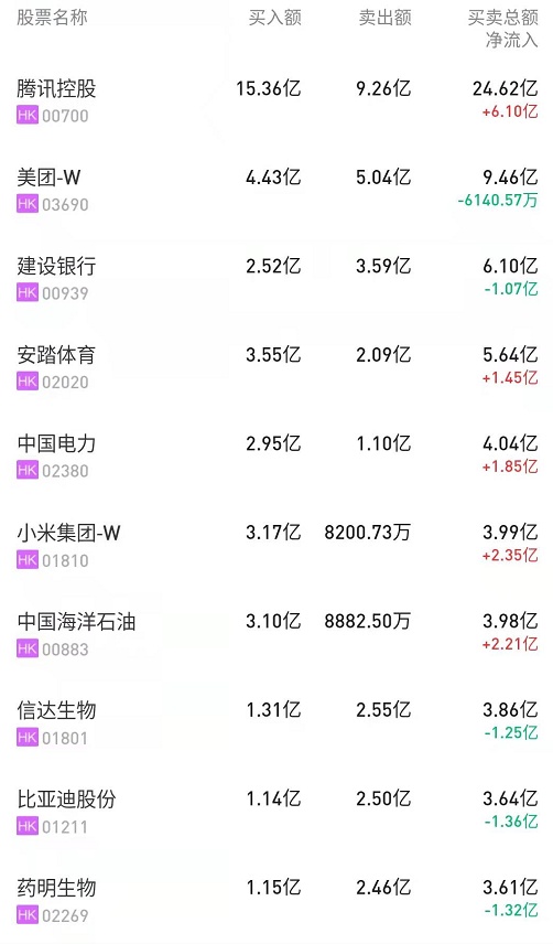 此外,中海油(00883)、建设银行(00939)、美团-W(03690)分别获净买入2.73亿、1.8亿、1.02亿港元。而李宁(02331)、华润电力(00836)、东岳集团(00189)分别遭净卖出1.45亿、6853万、1450万港元。