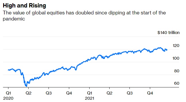 这就是全球股票市场的总价值,达到了创纪录的120万亿美元,比2019年3月疫情开始时的低点翻了一番。这种增长是无情的。