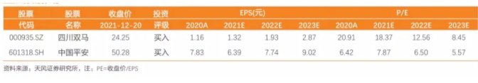 智通财经APP获悉,2021年12月17日,银保监会发布《关于修改保险资金运用领域部分规范性文件的通知》,天风证券对此点评称,《通知》的出台对保险资金的运用做出进一步的规范,将缓解险企投资端的压力,并显著利好创投行业 。在房地产风险逐步化解的背景下,天风推荐华夏幸福债务化解方案逐步落地的中国平安(601318.SH)。另一方面,引导保险资金投资私募股权基金体现了政策对于创投行业的大力支持,创投行业景气度在政策不断加码下持续提升,天风推荐率先布局硬科技优质赛道的头部私募股权基金管理人四川双马(000935.SZ)。