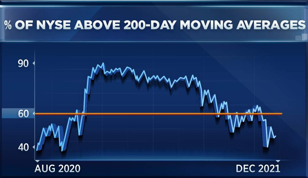 Ari Wald表示:“这确实说明存在反向投资的火力,我认为这将为新的一年创造新高。”不过,他还表示,股市涨势的质量始终很重要,如果标普500指数的高点被不到60%的在200日移动均线上方交易的纽交所股票“削弱”,他将感到担忧。