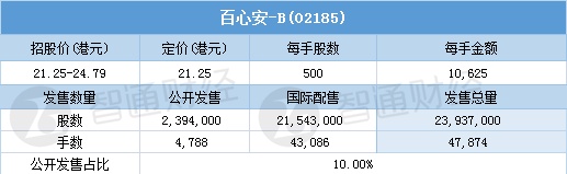 智通财经APP获悉,12月22日,百心安-B(02185)配售结束,配售招股价21.25-24.79港元,最终定价21.25港元,每手10625港元。