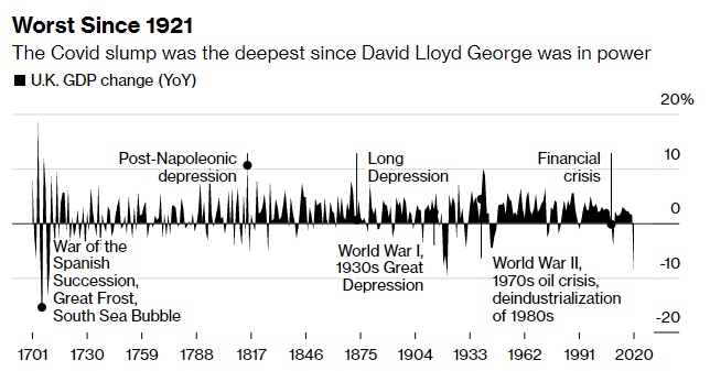 英国国家统计局的修正数据显示,疫情第一年,英国经济比预期的要好,经济萎缩了9.4%,而不是9.7%。但这仍然是自1921年以来最大幅度的经济萎缩。