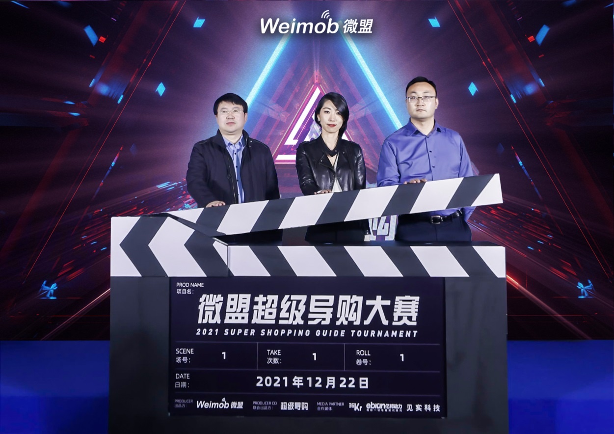 【图:微盟超级导购大赛启动仪式,左起:彭一,凌芸,翟昆】
