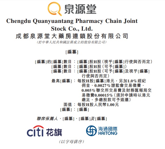 智通财经APP获悉,据港交所12月22日披露,成都泉源堂大药房连锁股份有限公司 (简称“泉源堂大药房”) (Chengdu Quanyuantang Pharmacy Chain Joint Stock Co., Ltd.)递表港交所主板,花旗、海通国际为联席保荐人。2021年6月9日,该公司曾向港交所递表。