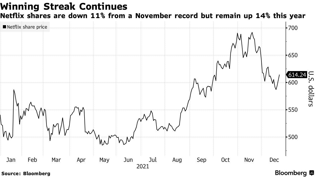 智通财经APP观察到,美股市场的科技股最近几周遭重创,流媒体巨头奈飞(NFLX.US)也不例外,该股价格较11月17日创下的历史高点下跌约11%。