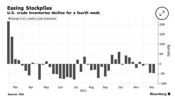 在周三,纽约原油期货价格上涨2.3%,每桶油价达到近73美元的价位。美国政府数据显示,美国截至12月17日当周EIA原油库存下降了472万桶,远超预期值250万桶。而考虑到进入假期后,成交量可能会减少,这将导致市场上容易出现更大的价格波动。
