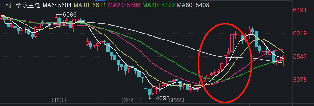 与此同时,自11月17日到12月1日,纸浆期货主力持续上涨,价格逼近6000元/吨大关,区间涨幅超22%。