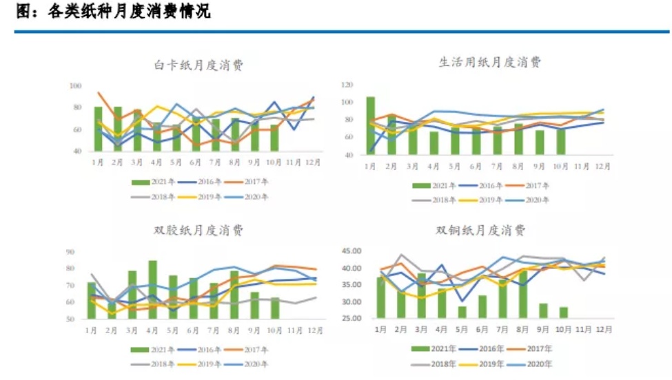 不过,相对于紧张的供应端表现,需求端目前则尚未显露出明确的上涨迹象:一方面虽然纸厂的开工率在在限产限电的措施结束后有了好转,但是依然低于往年同期的水平;另一方面