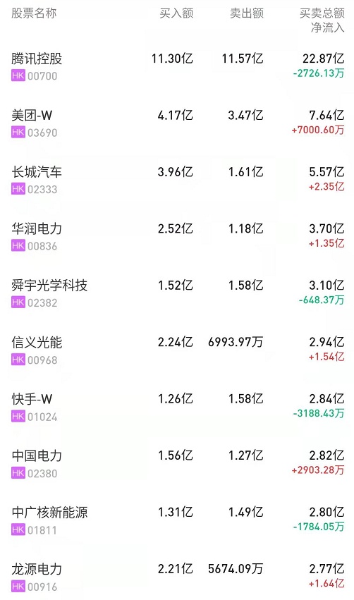 智通财经APP获悉,12月23日港股市场,北水成交净买入28.65亿,其中港股通(沪)成交净买入13.66亿港元,港股通(深)成交净买入14.99亿港元。