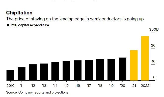 即使有可能得到政府的帮助,英特尔在2022年的新工厂和设备预算仍高达280亿美元,高于今年的约180亿美元预算。这些支出计划已经引起了投资者的不满,他们担心这会对公司利润造成影响。