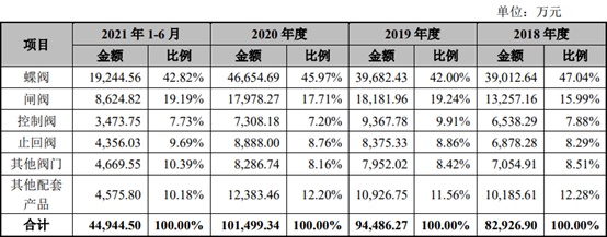 从收入结构上来看,公司主营业务收入来源于蝶阀、闸阀、控制阀、止回阀、其他阀门和其他配套产品的销售收入,其中蝶阀和闸阀是公司的主要产品,收入合计占比均超过60.00%。