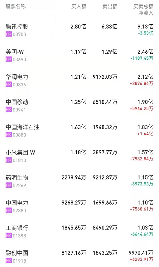 此外,中海油(00883)、东岳集团(00189)、融创中国(01918)分别获净买入1.43亿、2538万、2512万港元。而工商银行(01398)遭净卖出6644万港元。