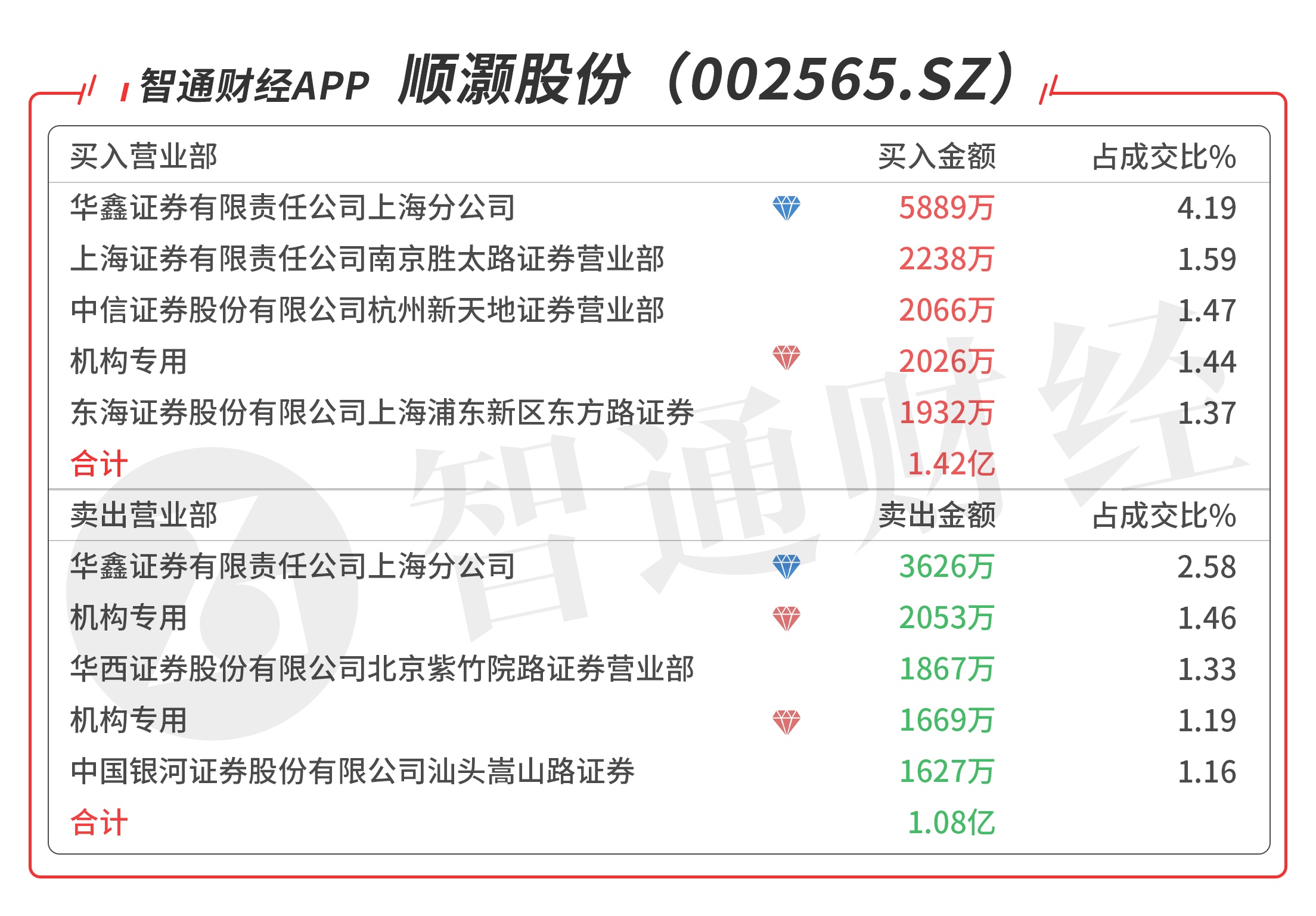 顺灏股份(002565.SZ):多主力现身龙虎榜,两家机构对倒,买卖均衡,买一是知名游资的席位对倒净买入2263万元,当日净买入5688万元,该股今日强势反包涨停,预计有溢价。