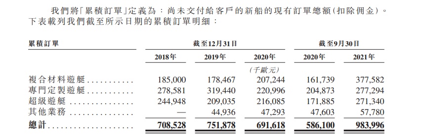 根据行业顾问,于整个以往经营期间,就30英呎(约9米)以上的舷内复合及专门定制游艇的生产价值而言,公司一直位居全球前列,公司将市场份额由2018年的约10%提升至2020年的12%。此外,作为公司专注于更高价值市场分部的力证,2020年,公司80至99英呎(约24至30米)的舷内复合材料游艇及100英呎以上(约30米至43米)的舷内专门定制游艇取得较高市场份额,分别约15%和23%。