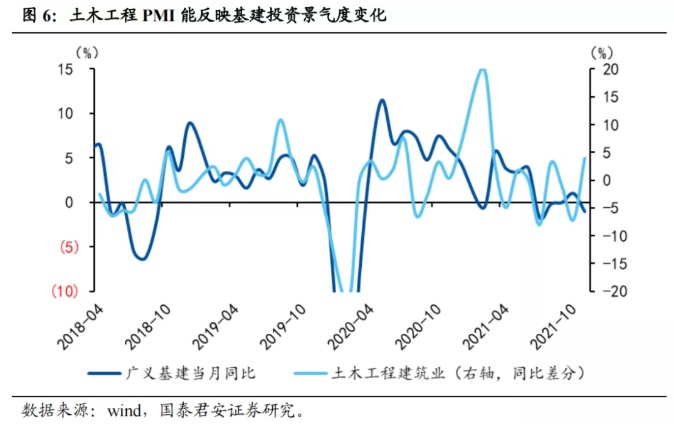 类似地,若要保持22年整个上半年经济增长在5%的水平,则22年上半年基建(狭义)增速则需要达到约18.7%;若要保持22年全年增长在5.5%的水平,则22年基建增速需要达到约16.3%。