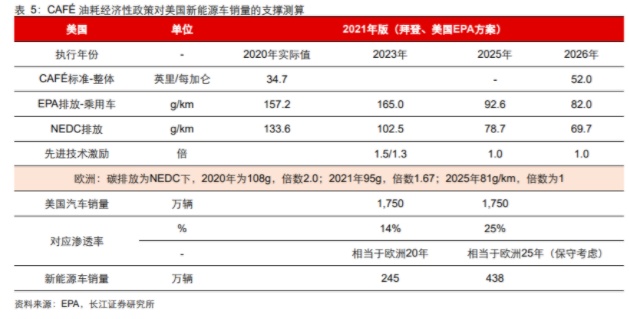 其实即使不考虑税收抵免政策的加码,美国新能源车未来几年也大概率保持高速增长,一是得益于更加严格的CAFÉ油耗经济性政策近期落地,二是美国车企明年将迎来全新的新能源车型周期。