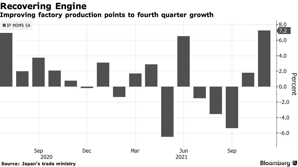 尽管11月工业产值激增,但仍低于7月份的水平,这表明全球供应链受阻对日本制造业造成了破坏。