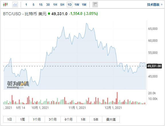 智通财经APP获悉,截至发稿,比特币日内跌超3%,报49331美元。据了解,一些分析师认为,该加密货币是否跌破5万美元是评估其在2022年前景的关键。同时,以太坊和彭博银河加密货币指数(the Bloomberg Galaxy Crypto