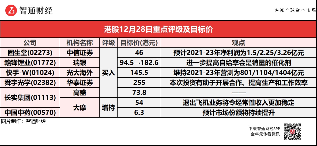 光大海外称,快手-W(01024)有望借力美团(03690)打通本地生活服务商业循环,中长期受益于视频化深入推进,看好公司商业化潜力,维持2021-23年营收预测为801/1104/1404亿元人民币。12月27日快手生态开放大会,快手与美团宣布达成互联互通战略合作。快手平台将上线美团小程序,为美团商家提供套餐、预订等商品展示、线上交易和售后服务等完整服务能力,快手用户将能够通过美团小程序直达。