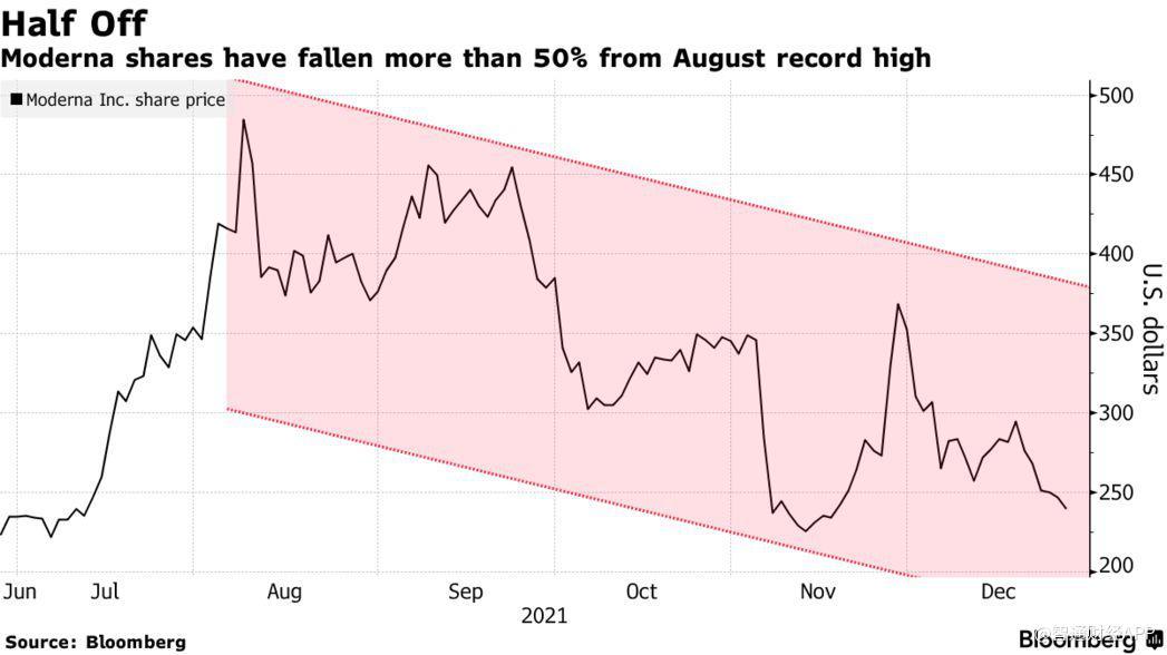 在奥密克戎席卷全球的同时,由于辉瑞(PFE.US)以及默沙东(MRK.US)的新冠口服药最近获得了美国食品和药物管理局(FDA)的授权,Moderna的股价受到了压力。截至周二收盘,该股收跌2.2%,报241.44美元。