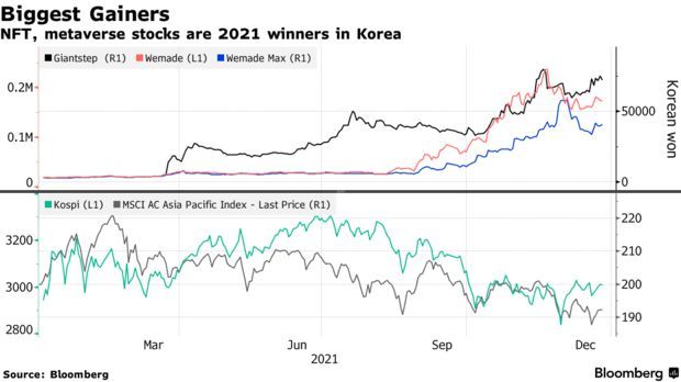 智通财经APP获悉,韩国2021年表现最好的10只股票中,有6只与元宇宙或NFT相关。其中,Wemade