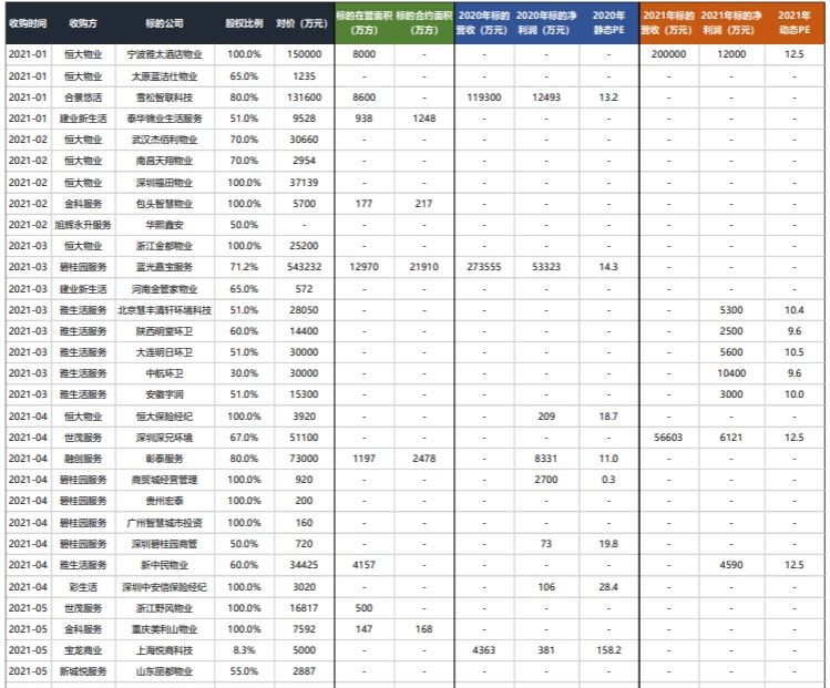 2021年上半年,物管行业并购整合加速,大概发生了逾三十起并购案例,比如,恒大物业先后并购宁波雅太酒店物业、深圳福田物业、浙江金都物业等,雅生活服务并购新中民物业、中航环卫等,新城悦服务并购祥城物业、浙江梁士物业等。