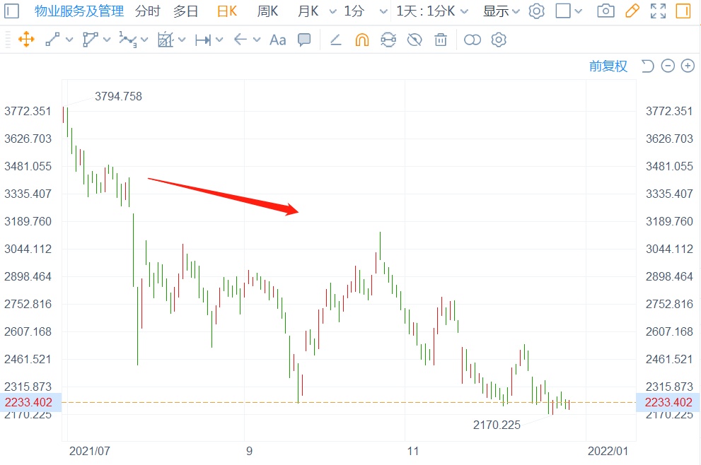 而这一政策的出台也引发了市场对监管趋严担忧,再叠加下半年房企信用事件频频爆发、商品房销售承压等影响,与之关联度极大的物业板块也受到了波及。