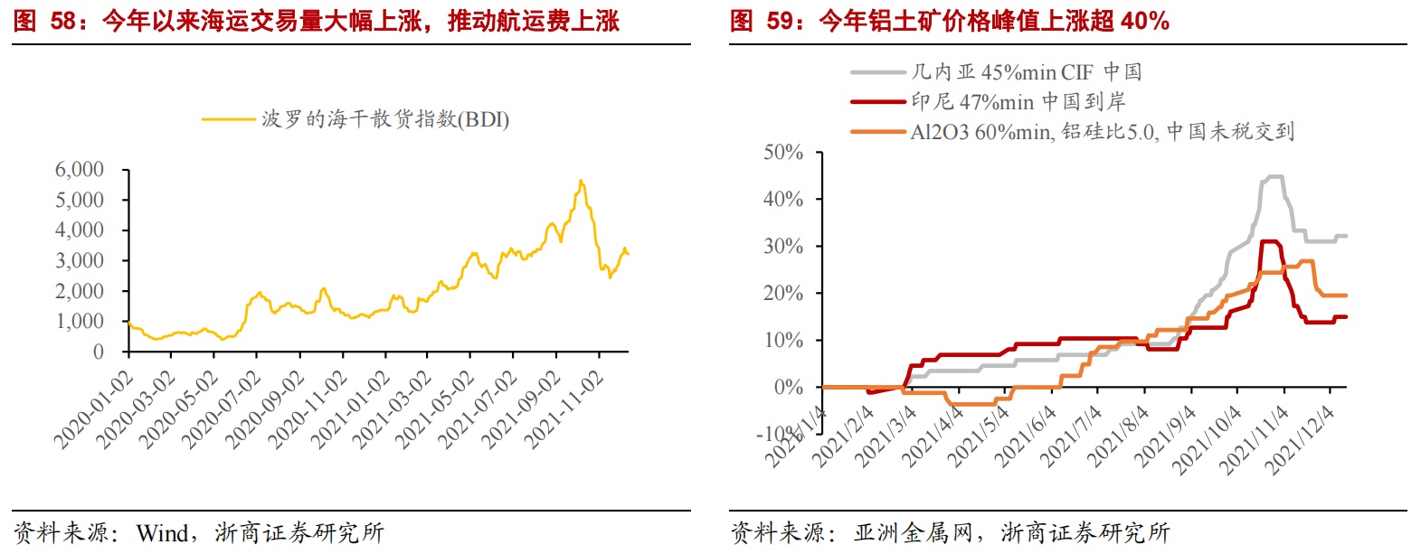 氧化铝成本端,铝土矿、烧碱、煤炭、海运等等成本均大幅上涨。今年以来,海运价格高涨,无论是铝土矿进口还是氧化铝进口,都造成成本不同程度地抬升。同时,进口铝土矿受到几内亚政变干扰,国内的山西和河南铝土矿生产受到暴雨天气干扰,铝土矿价格持续上涨。