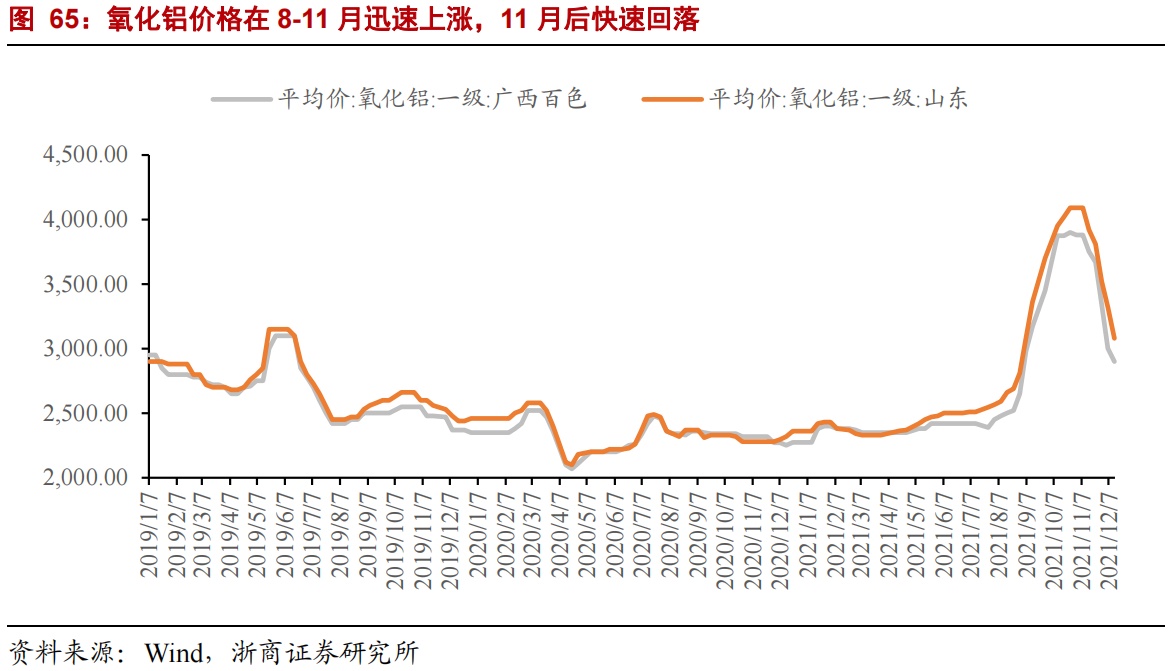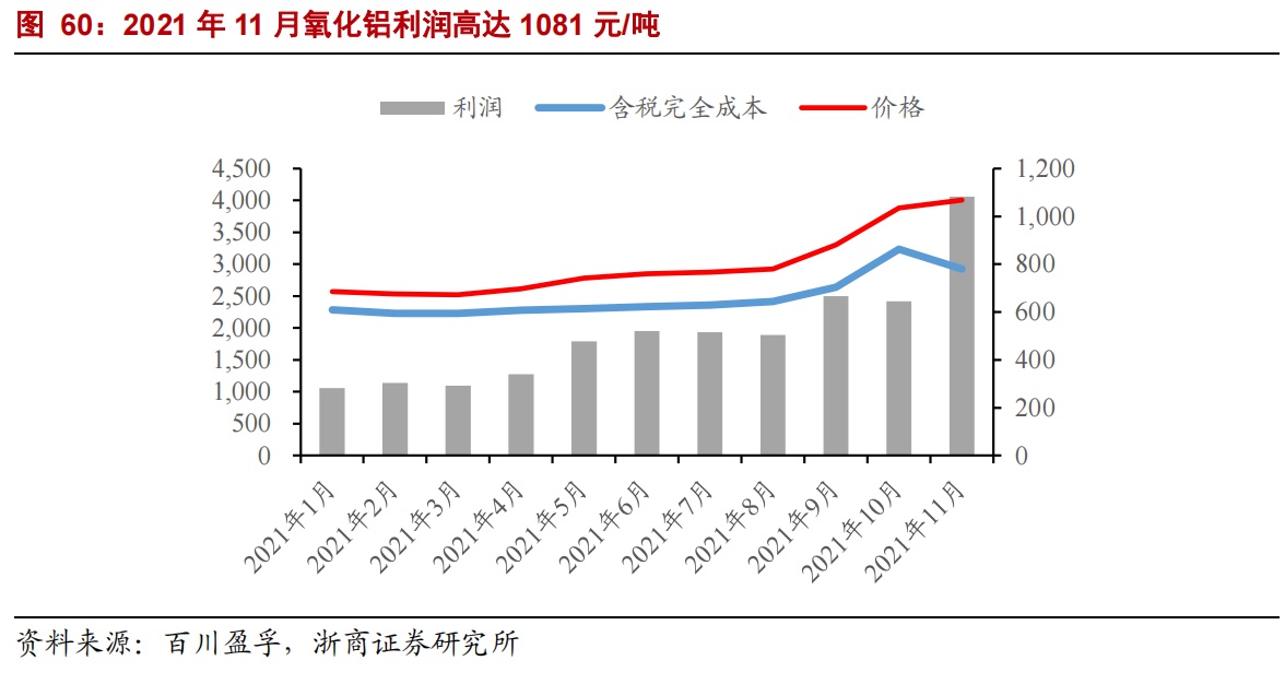根据百川盈孚数据,8月份氧化铝的含税完全成本为2417元/吨,到11月,氧化铝成本已经涨至2925元/吨,三个月涨幅达到21%。
