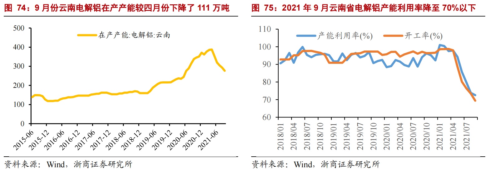 内蒙、广西能耗双控红色预警,限制严格,电解铝未投产产能50万吨,假设其中仅有10%可投产,对应新增产能10万吨。综合来看,假设新增产能全年生产,对应新增产量43.5万吨。