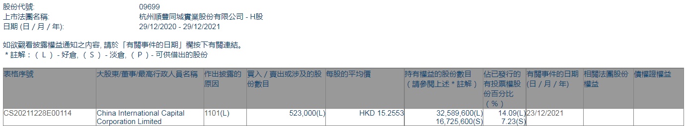 智通财经APP获悉,香港联交所最新资料显示,12月23日,中金公司增持顺丰同城(09699)52.3万股,每股作价15.2553港元,总金额约为797.85万港元。增持后最新持股数目为3258.96万股,最新持股比例为14.09%。