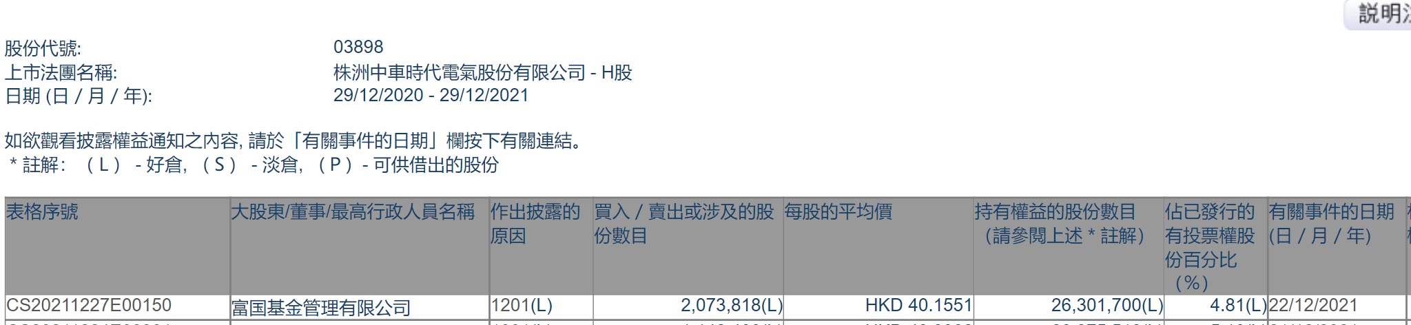 智通财经APP获悉,根据香港联交所资料显示,富国基金管理有限公司于2021年12月22日减持中车时代电气(03898)207.3818万股,每股作价40.1551港元,总价值约8327.44万港元,最新持股数减至2630.17万股,最新持股比例减至4.81%。