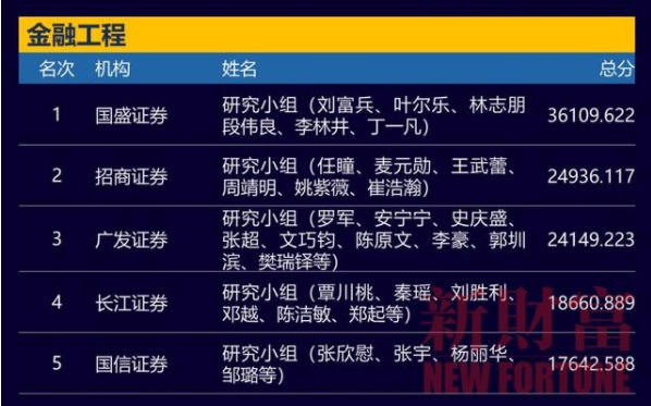 据悉,今年新增的3位新财富白金分析师其中有位是国盛证券刘富兵,新财富史上的白金分析师累计达23人。其中,刘富兵关注金融工程研究领域,2014年至2017年是第一名,2019年至2021年再次连续获得头名。