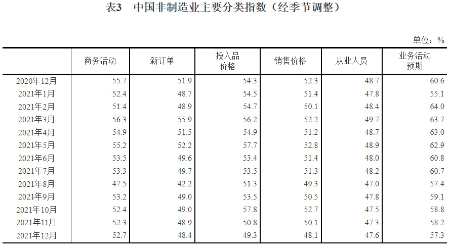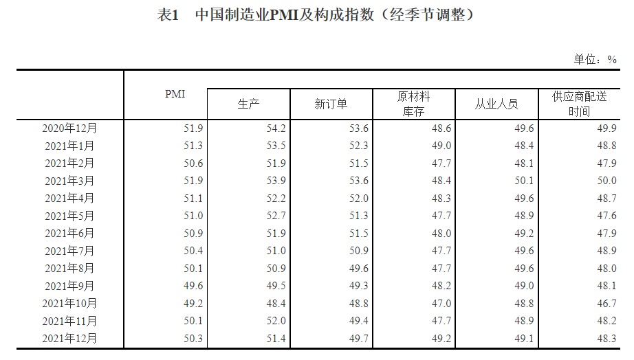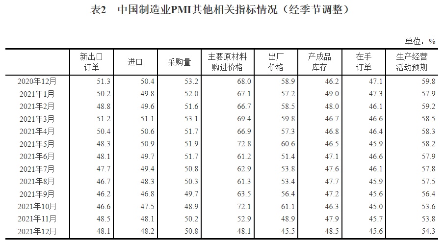2021年12月中国采购经理指数运行情况
