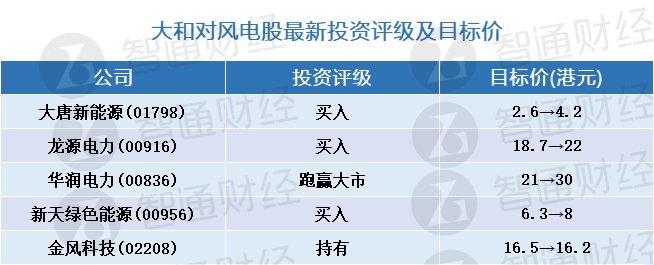 智通财经APP获悉,大和发布研究报告称,对中国风电行业行业看法由“中性”调高至“正面”,并上调多只相关股目标价。该行看好毛利率风险低的风电机组零件生产商,当中包括3个范畴:轴承制造商、海底电缆生产商,以及龙头铸件、锻造及风电塔制造商。