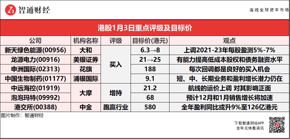 大和上调新天绿色能源(00956)2021至2023年每股盈利预测5%-7%,以反映其可再生能源的发展。公司目标于“十四五"计划期间每年新增400至500兆瓦的风电装机,预估其位于河北丰宁的3.6吉瓦抽水蓄能电站将于明年底全面商业营运,公司将受惠于这两个项目的投产,而政府加快补贴支付,估计可为今年带来额外好处。